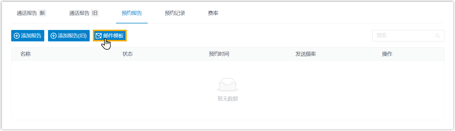 - 在 预约报告 页签下,点击 邮件模板。