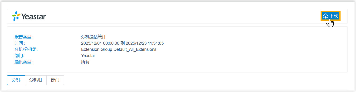 通话报告以指定的文件格式下载到本地电脑。