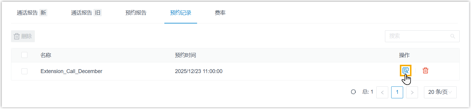 - 在 预约记录 页签下,点击通话报告旁边的