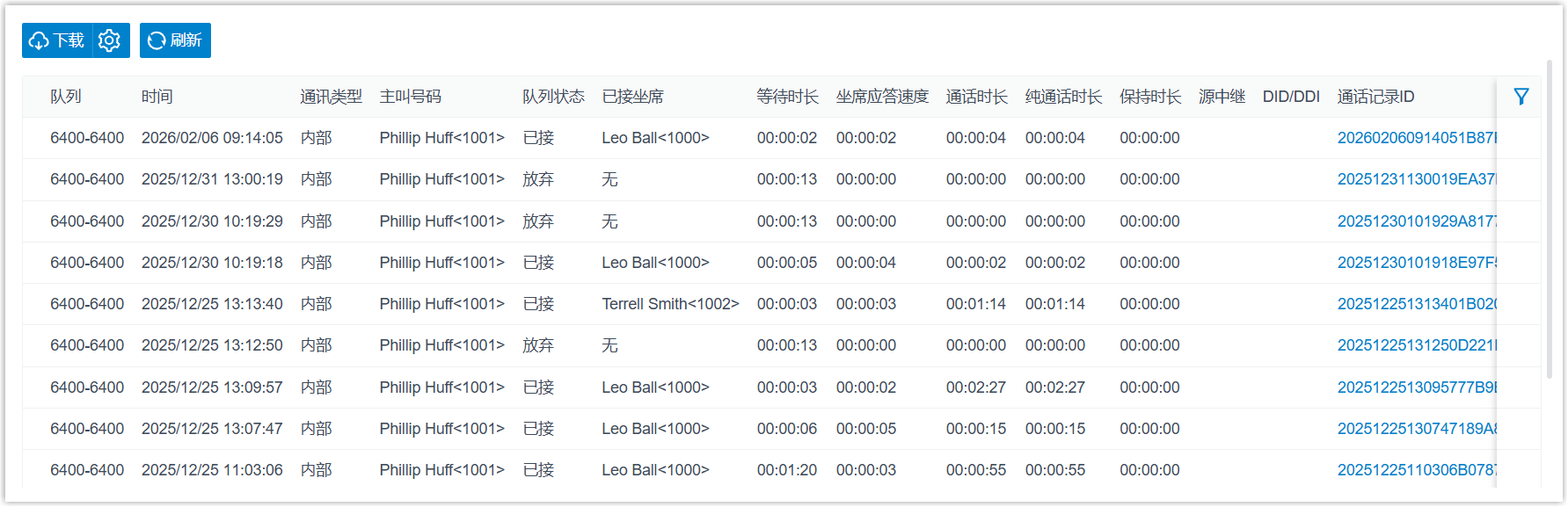 呼入队列记录报告