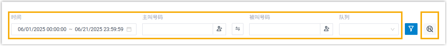 筛选字段 说明 时间 设置开始日期和结束日期。 注: 查询具体时间段内的通话记录,点击 选择时间,设置开始时间和结束时间。