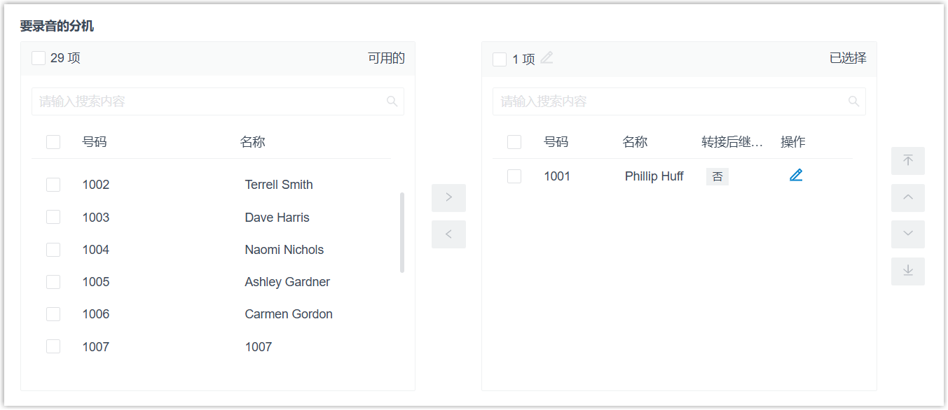 - 在 可用的 框中,选择相应的分机,加入 已选择