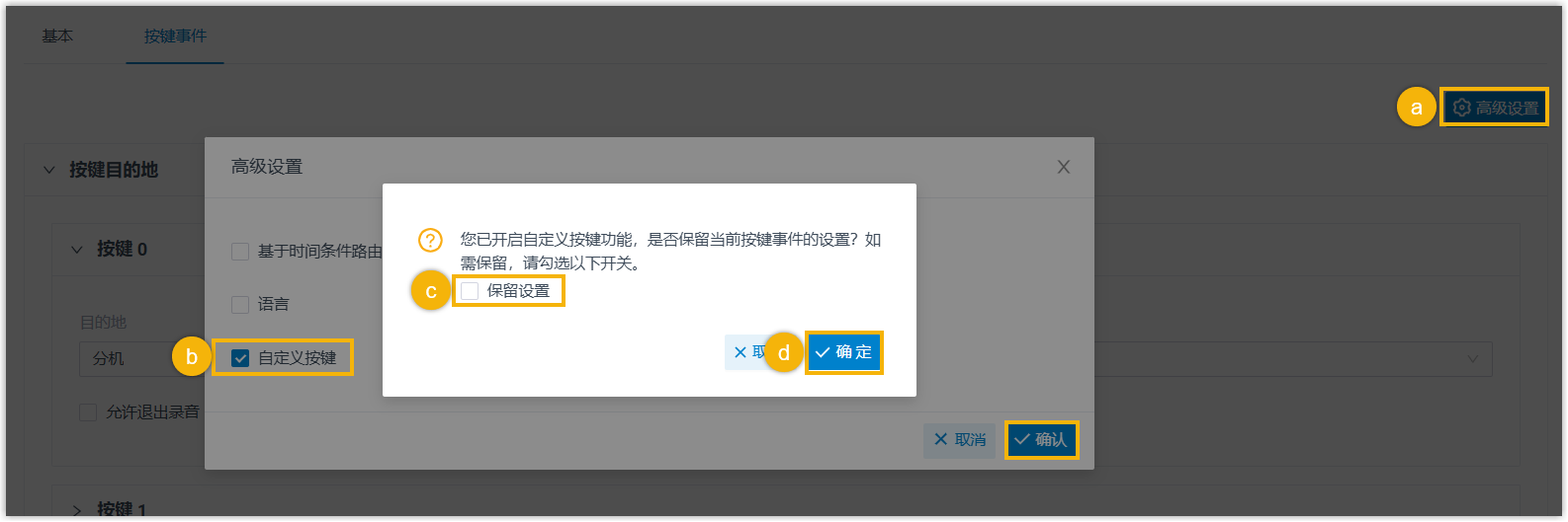 会先匹配按键值。如果按键正确,通话将根据时间条件被路由到指定目的地;如果按键错误,通话将被路由到无效按键或响应超时目的地。