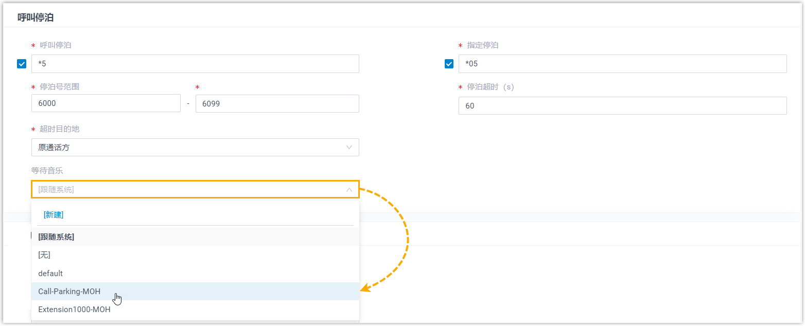 默认情况下,通话被停泊时,系统会向被停泊方播放默认的等待音乐 (在 中设置)。你也可以参考本文操作,为通话停泊单独设置一个等待音乐。