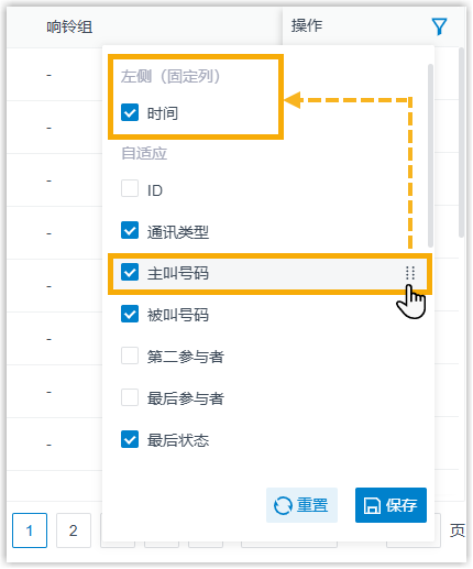 - 设置通话记录的高级筛选条件,用于筛选通话阶段数据。