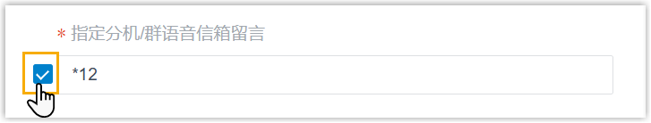 注: 如要转接至群语音信箱,需确保已启用 指定分机/群语音信箱留言 功能 (路径:呼叫功能 > 特征码 > 语音信箱)。