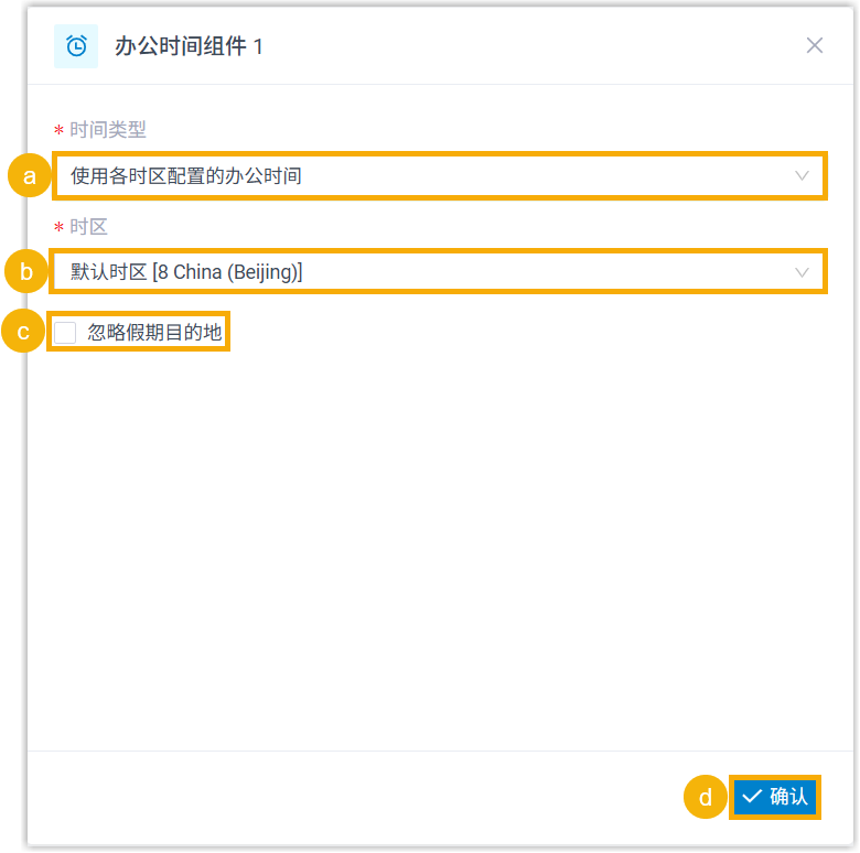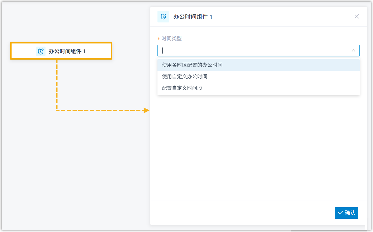 - 在 时间类型 下拉列表中,选择 使用各时区配置的办公时间。