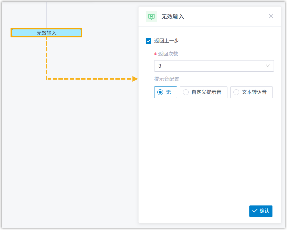 4. 可选: 配置提示音或文本转语音内容,提示来电者重新输入。
