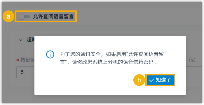 你可以设置系统停止收集来电者输入号码的条件,例如达到按键超时、响应超时、或来电者按下结束键。此外,还可以配置提示音或文本转语音内容,用于引导来电者输入号码。