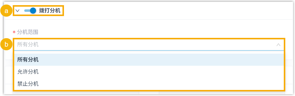 • 禁止分机:允许拨打除指定分机以外的分机。
