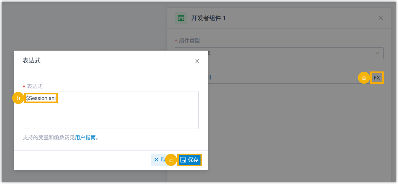 - 添加 开发者组件 至通话流程后,点击组件进行配置。