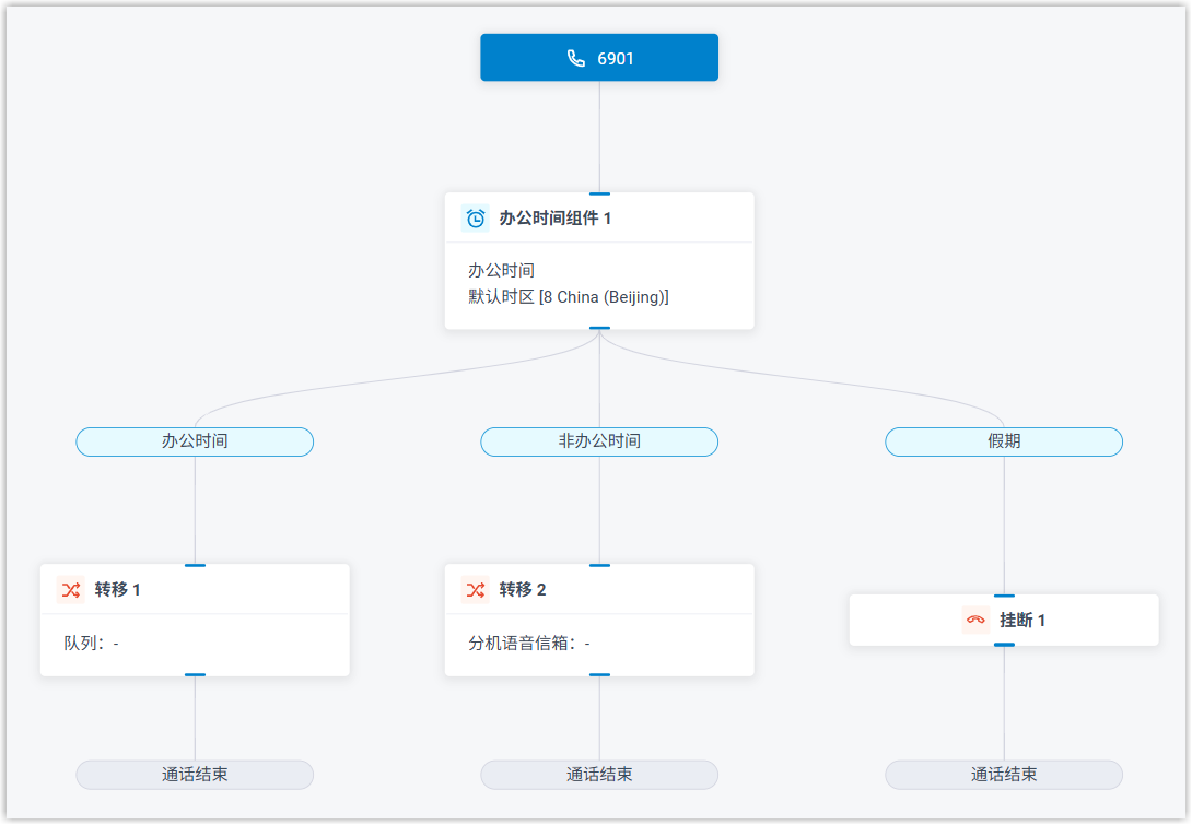 办公时间 办公时间 组件支持根据不同时间将来电路由至对应的目的地。