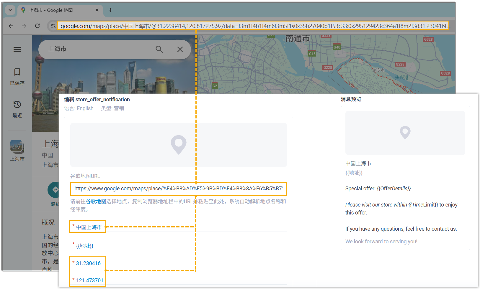- 对于位置信息,你可以直接粘贴 Google 地图