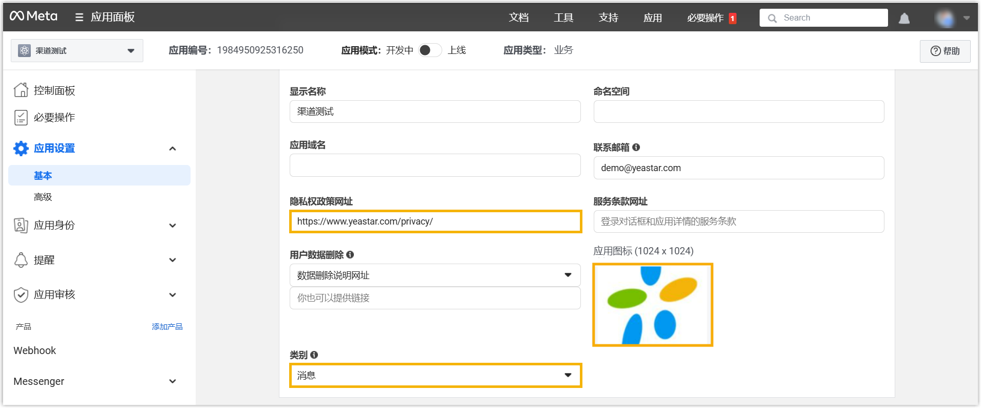配置完 Facebook 渠道后,你需要测试 Facebook 公共主页和 Yeastar P 系列云 PBX 之间的消息收发,并提交应用审核。