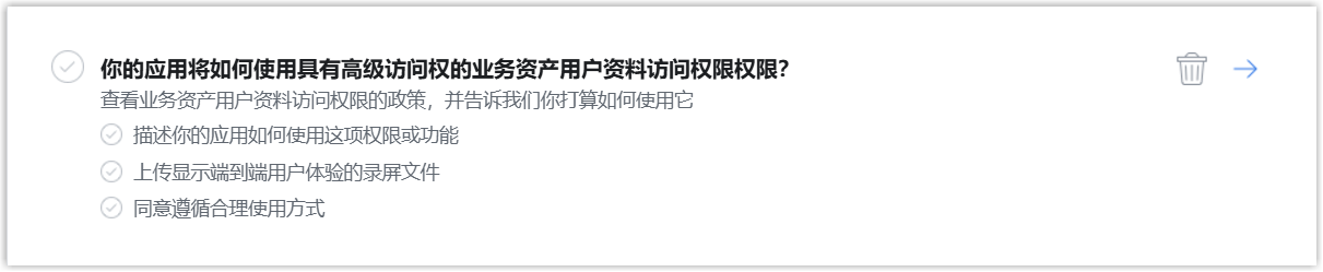 - 点击 你的应用将如何使用具有高级访问权的业务资产用户资料访问权限权限?。