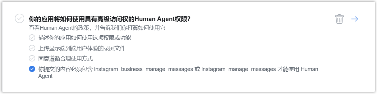 - 点击 你的应用将如何使用具有高级访问权的Human Agent权限?。