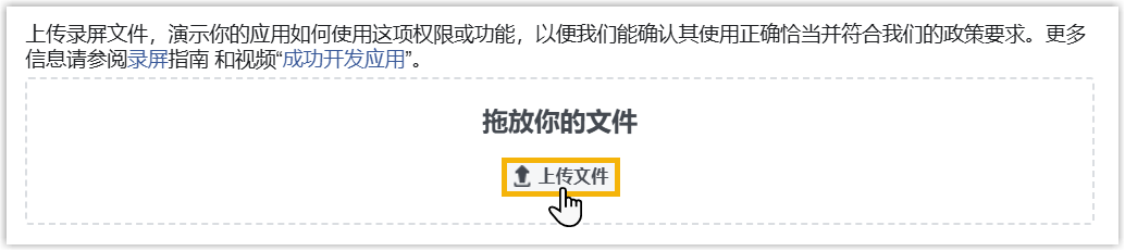 - 点击 上传文件,上传演示如何使用人工坐席标签回复客户消息的 录屏文件。