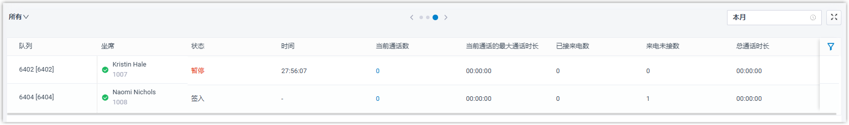 - 队列坐席状态的列表视图