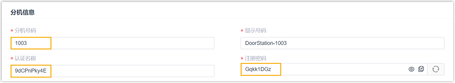 - 记录以下详细信息,后续在 2N IP 门口机进行分机注册时需要使用到这些信息。