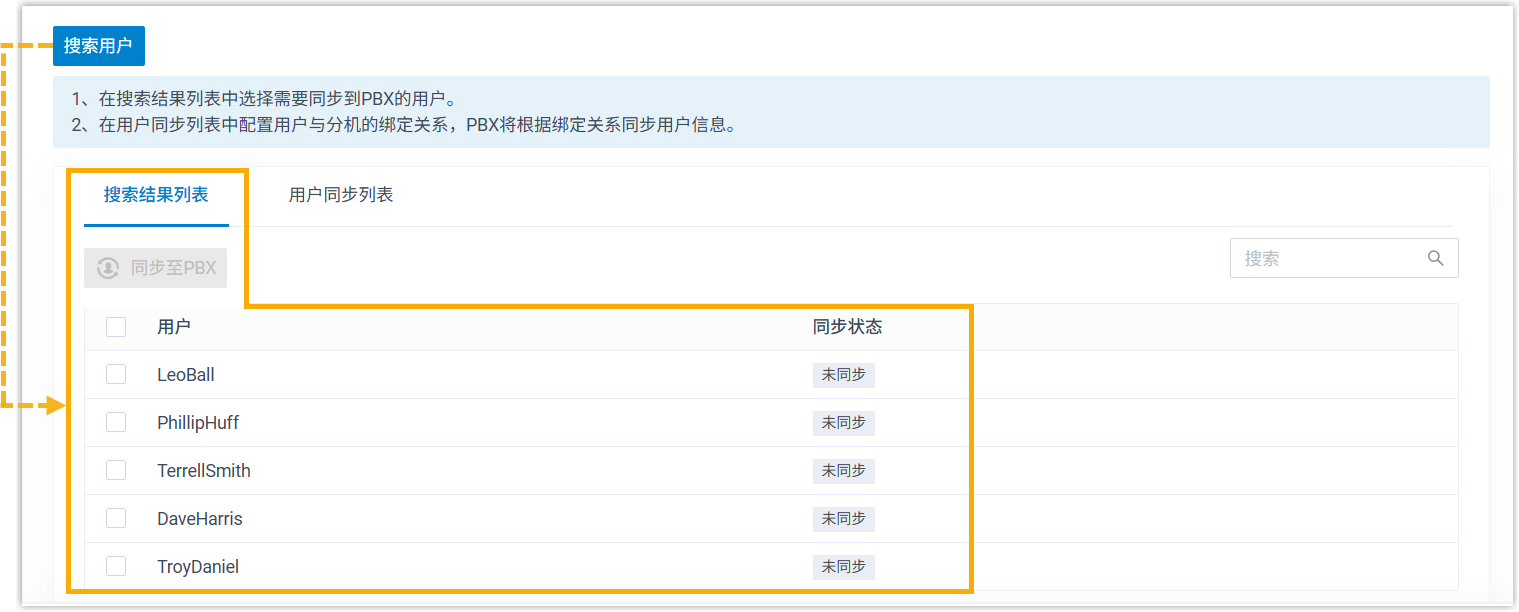 PBX 在指定范围内搜索 Microsoft Entra ID 用户,并显示在 搜索结果列表 中。