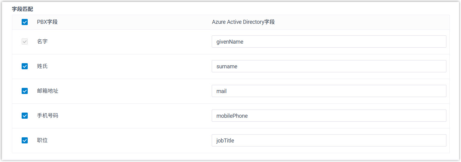 - 若勾选此项,具有相同邮箱的 Microsoft Entra ID 用户将被同步到 PBX 并与现有分机绑定,分机的用户信息会被 Microsoft Entra ID 用户的信息覆盖。