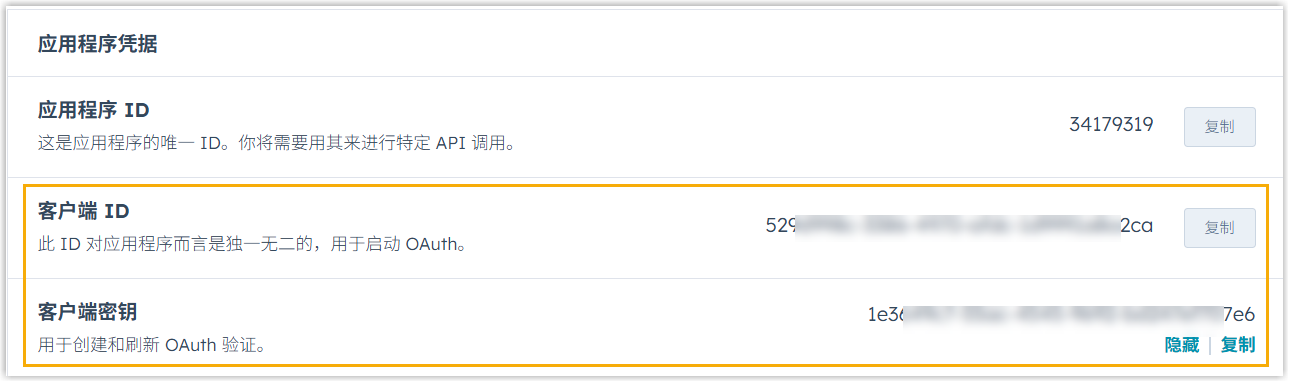 你需要使用开发者账户在 HubSpot 上创建一个用于对接的应用程序,并配置授权范围。