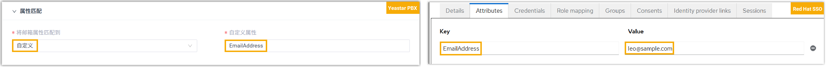 - 如果使用自定义的邮箱属性作为单点登录的唯一标识,选择 自定义,并确保在 PBX