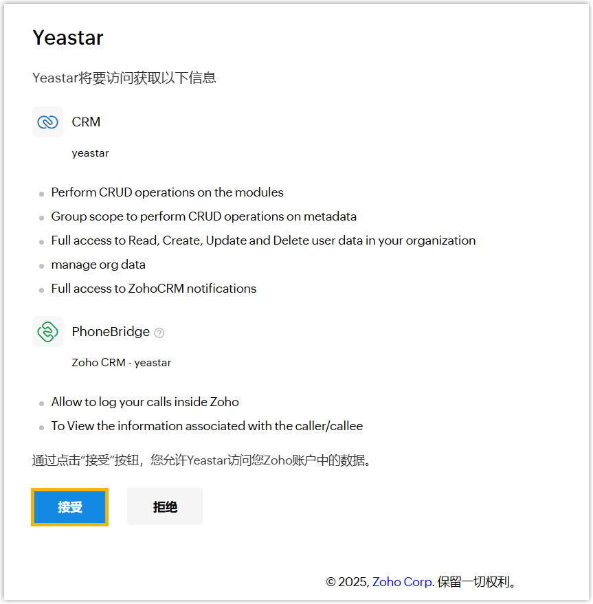 通过 PhoneBridge 对接 Yeastar P 系列云 PBX 与 Zoho CRM