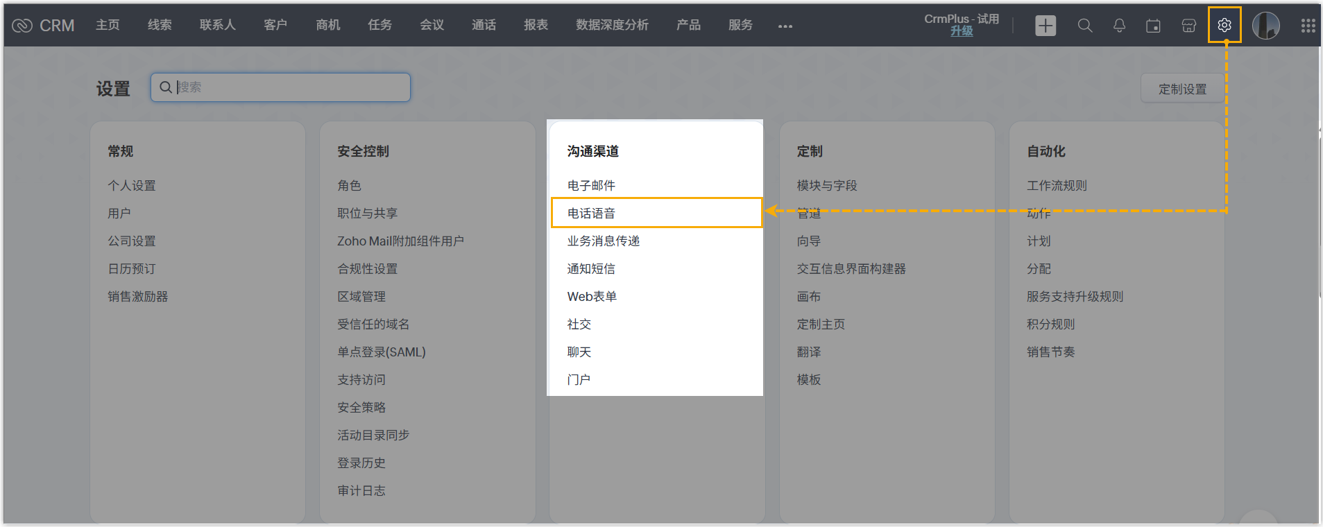 - 使用具有管理权限的账号登录 Zoho CRM,进入 。