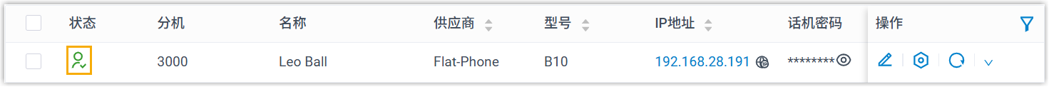 - 分机成功注册到 IP 话机上。你可以在 PBX 管理网页上查看注册状态 (路径:)。