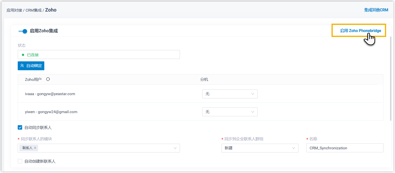 - 支持通过 PhoneBridge 对接 Zoho CRM,对接后可直接在 Zoho CRM 内实现点击拨号、来电弹窗、即时通话跟进、通话录音回放等功能。