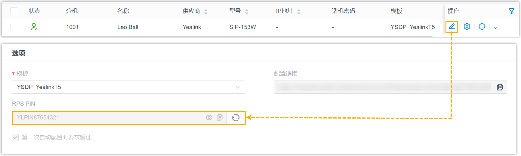 - 可直接在话机列表中查看 RPS PIN。