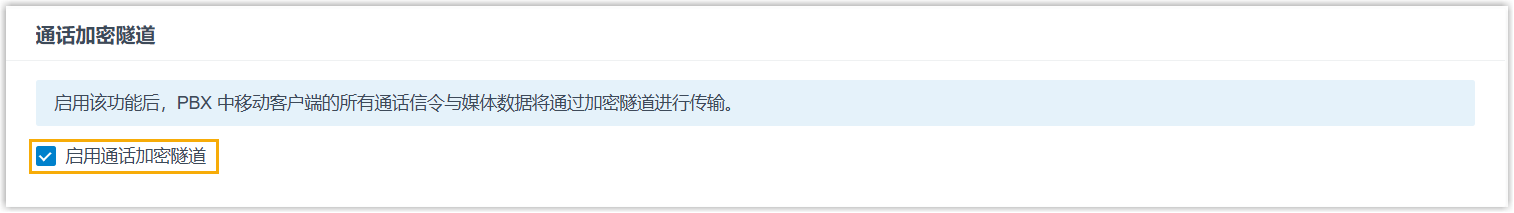 - 启用 通话加密隧道 功能