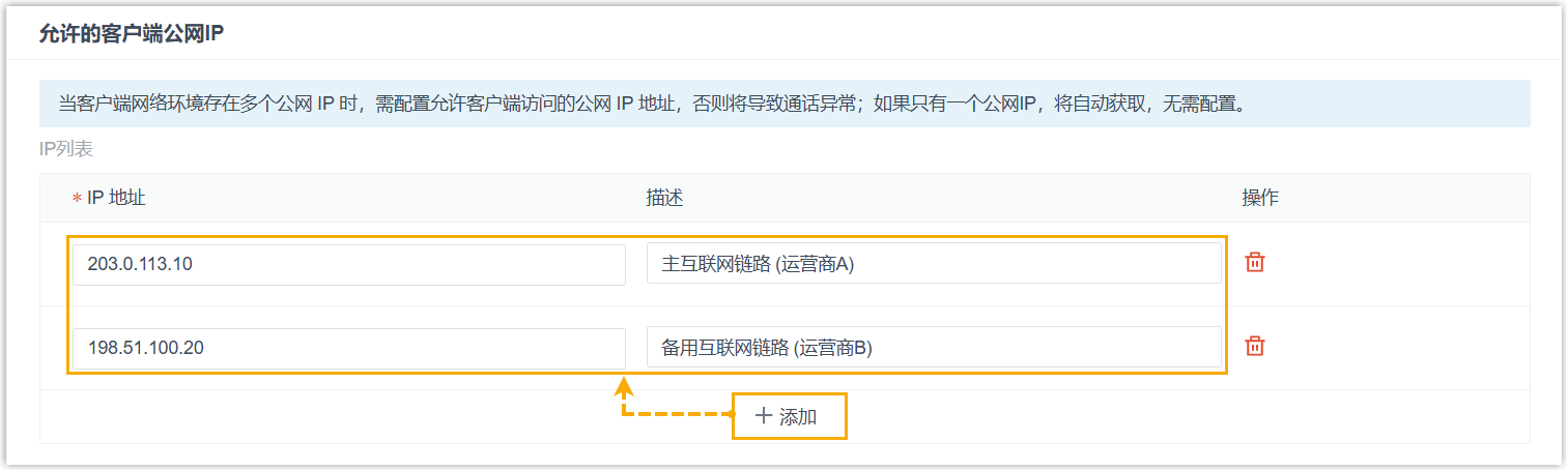 PBX 时允许使用的多个公网 IP 地址 (路径:)。