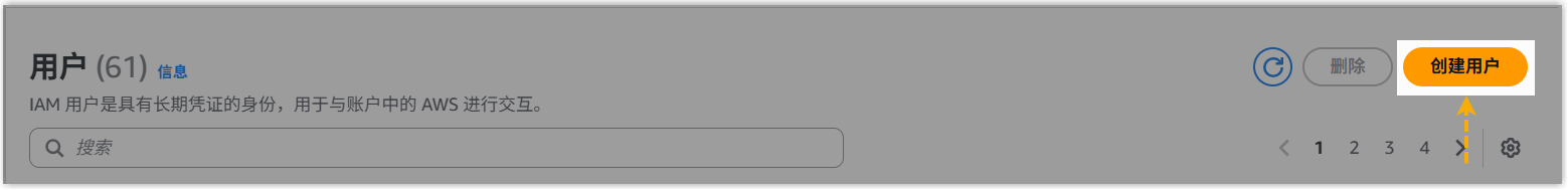 - 在右上角,点击 创建用户。