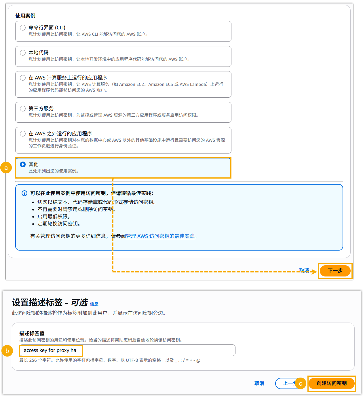 - 可选: 在 描述标签值,为访问密钥对填写一个简短说明。