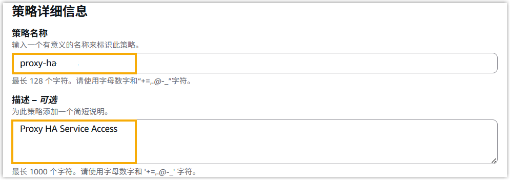 中,指定一个名称,帮助你识别此策略,并按需填写策略描述。