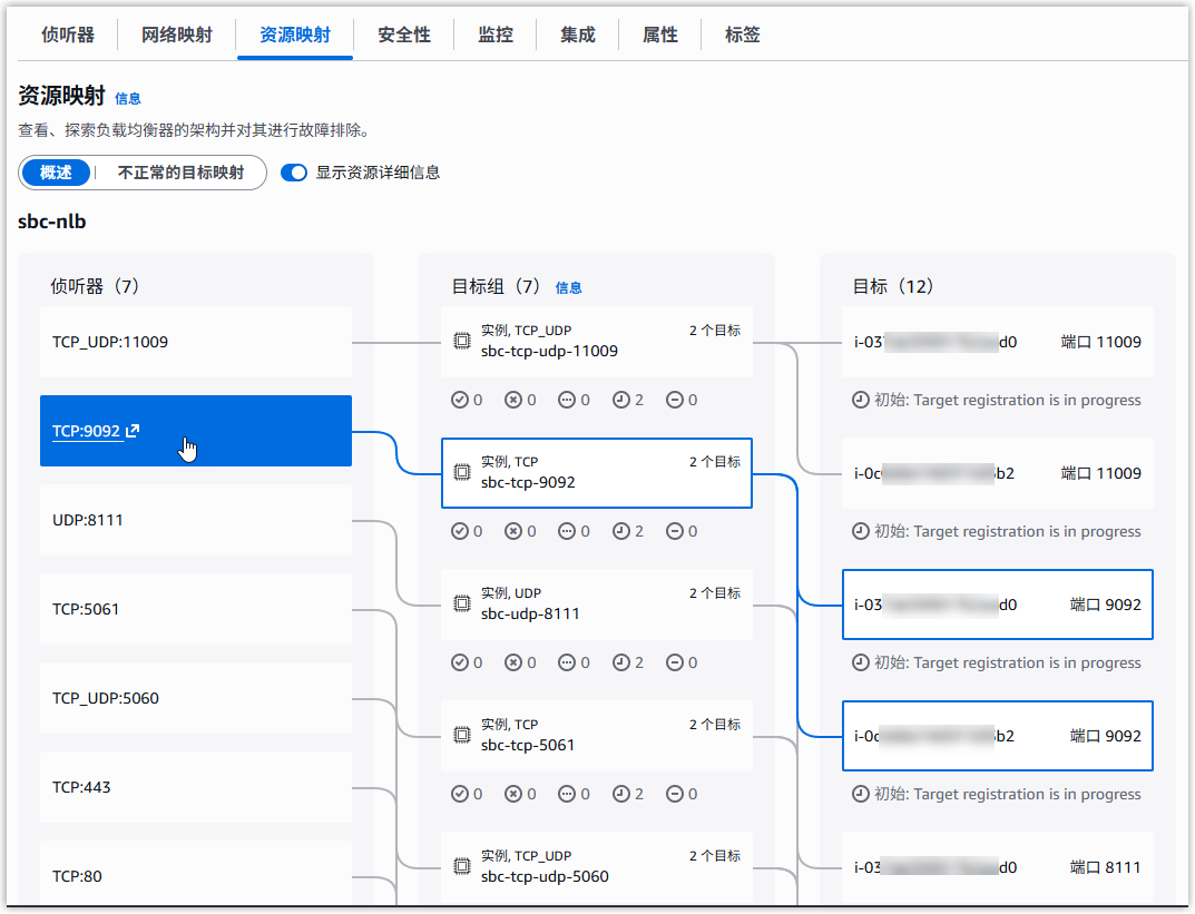 提示: 由于负载均衡器的私网 IP 地址不会显示在其详细信息页面上,如需查看,可进入 ,然后找到与你的负载均衡器关联的网络接口,并查看其 主要私有 IPv4 地址。