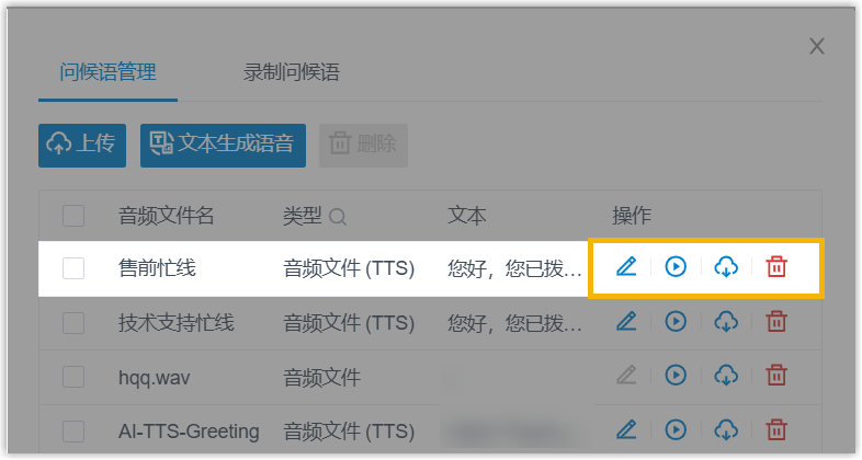 你可以通过 AI 文本转语音功能为下列功能生成问候语。