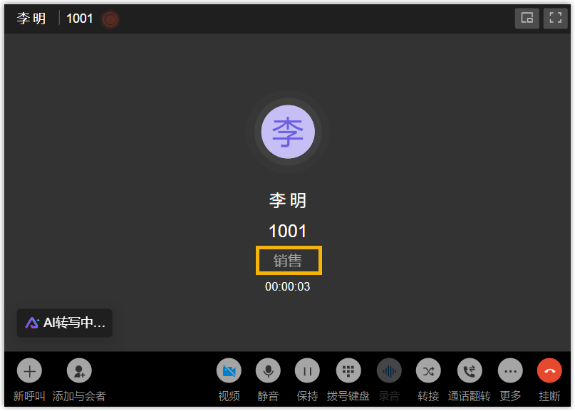 - 如果系统管理员在 PBX 服务器上为速拨码设置了备注,当使用特征码拨打速拨码时,备注将显示在通话窗口的电话号码下方。
