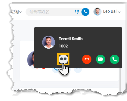 若在浏览或使用 Linkus 网页端时收到来电,在来电弹窗中点击