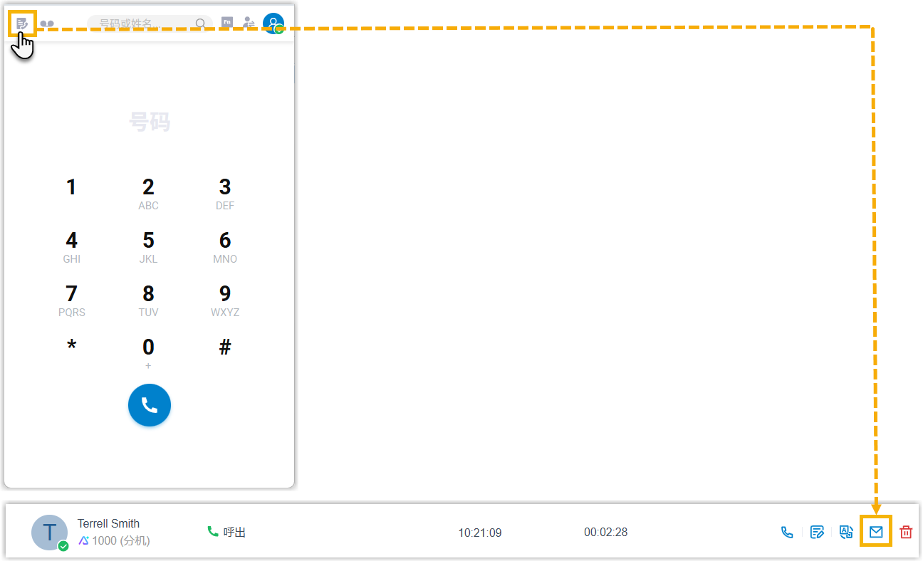 为了简化通话跟进流程,你可以从 Linkus 客户端通过邮件发送通话详情,如联系人信息、通话备注和 AI 通话转写总结。此功能在通话期间或通话结束后均可使用。