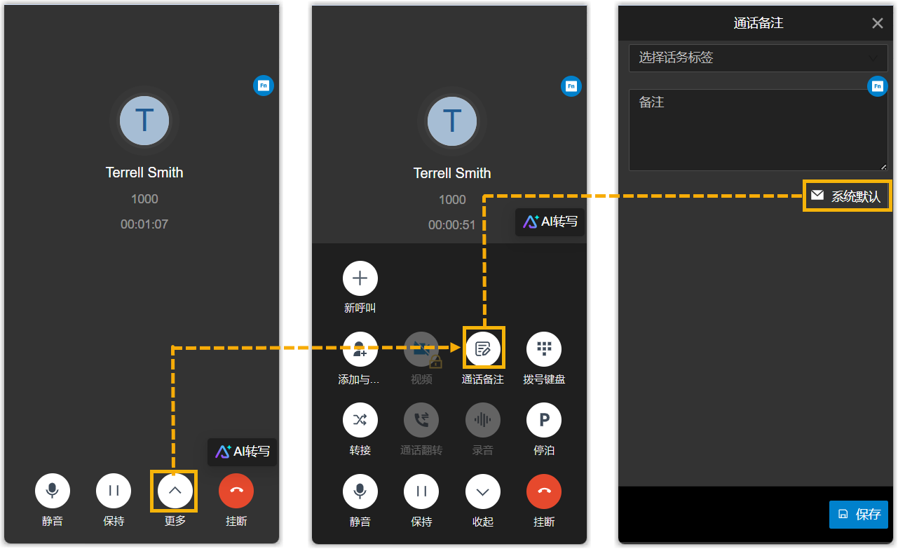 场景 方式 在通话过程中发送通话详情 - 如果通话备注功能可用,点击 。