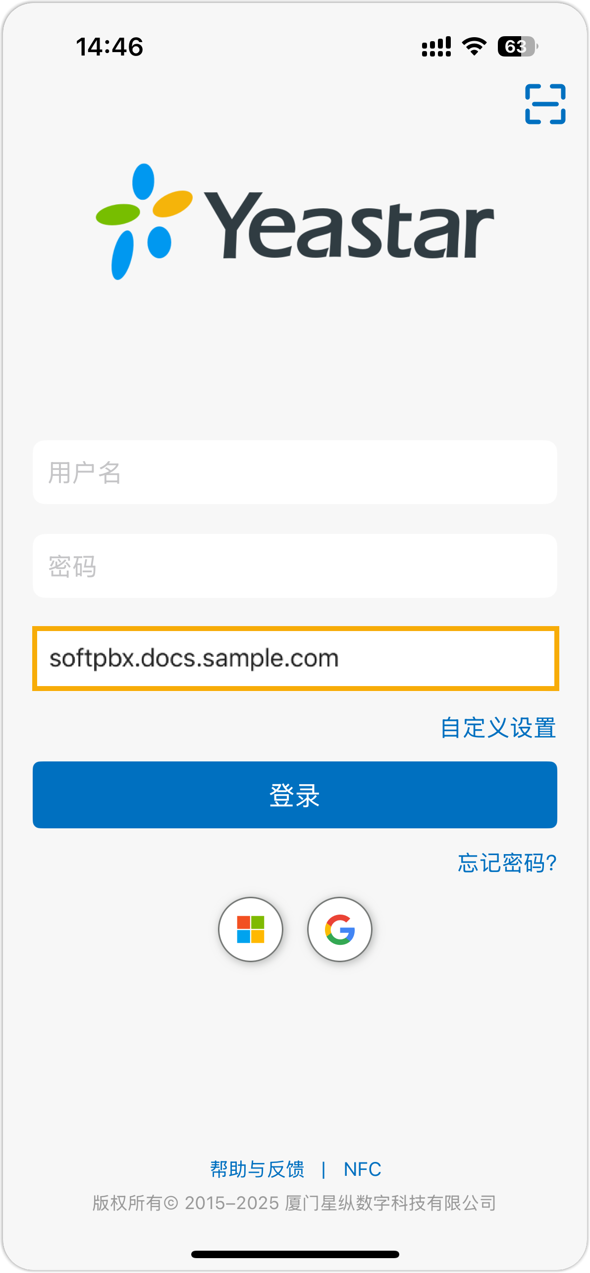 2. SN/域名 栏,填写支持 Google 单点登录的服务器地址。