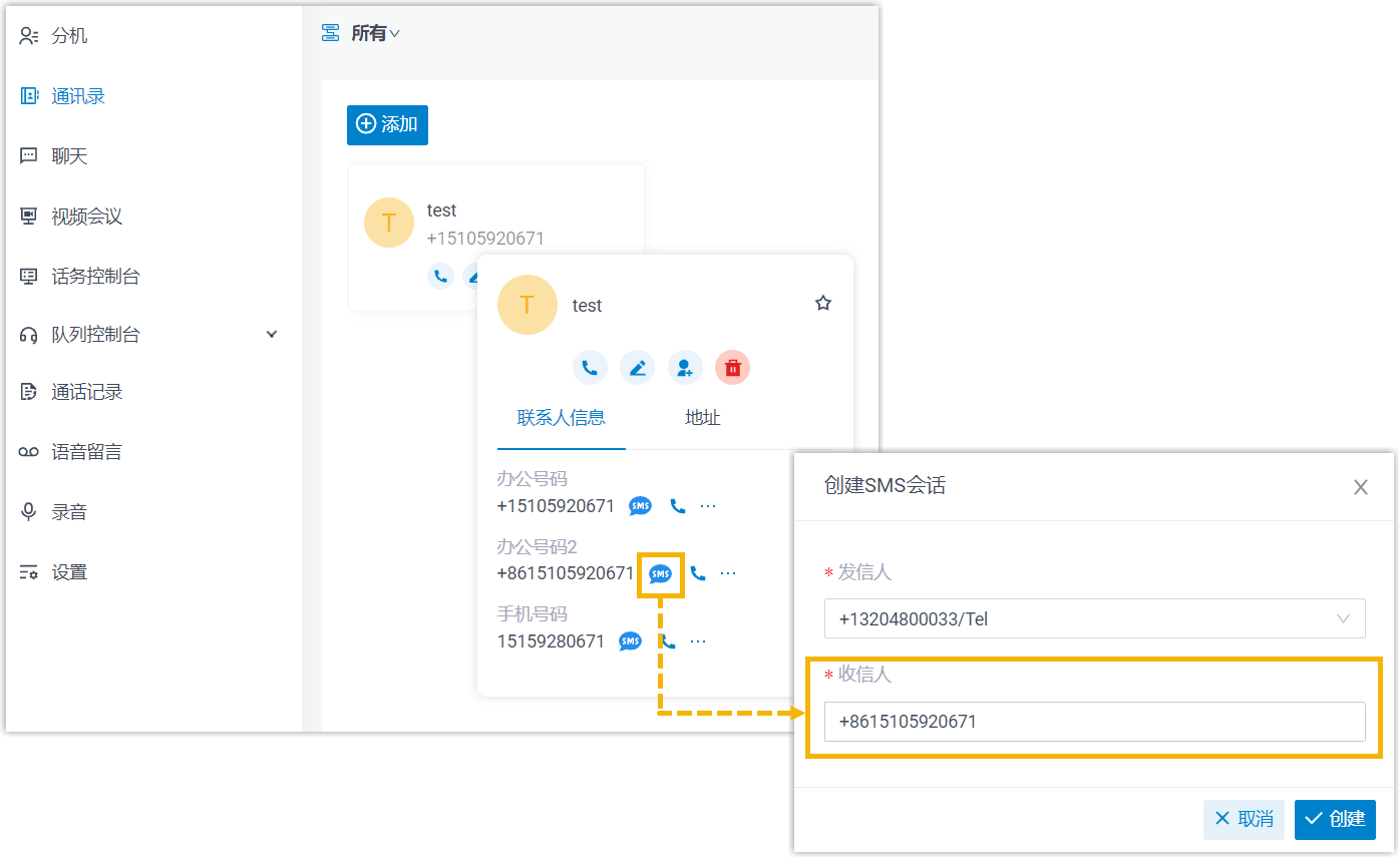 - 优化 外部聊天 功能:通过联系人、通话记录等快速创建 SMS 会话时,如果所选号码带有符号