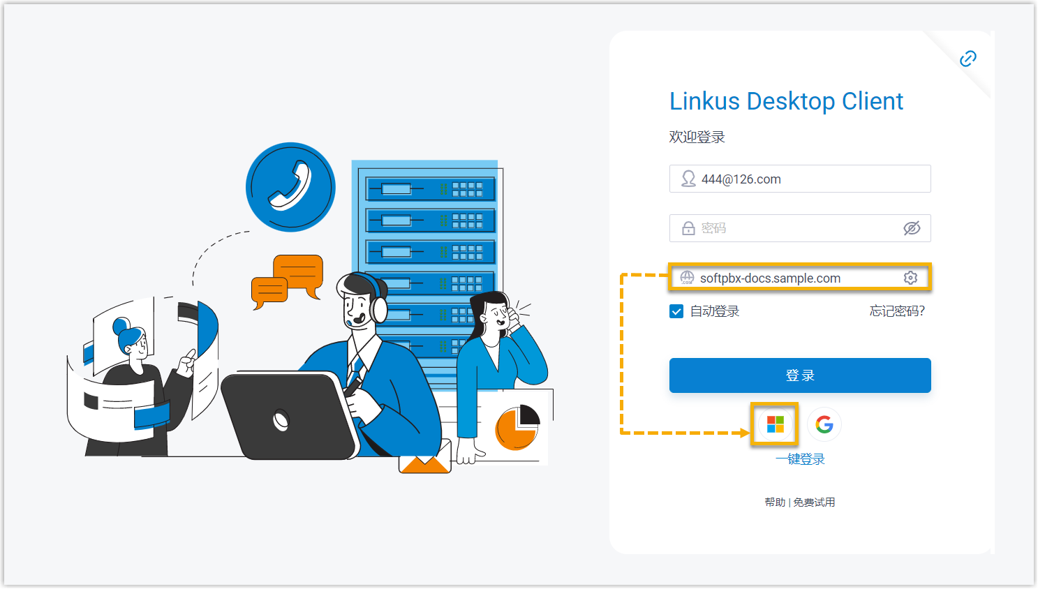 Linkus。注: 仅当系统管理员将 PBX 与 Azure AD (Azure Active Directory) 或 活动目录 (Active Directory) 集成后,用户才能使用此功能。更多信息,请参见以下内容: