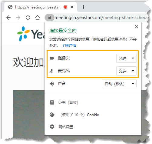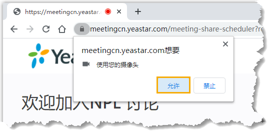 meetingcn.yeastar.com使用麦克风和摄像头。- 点击 允许,允许