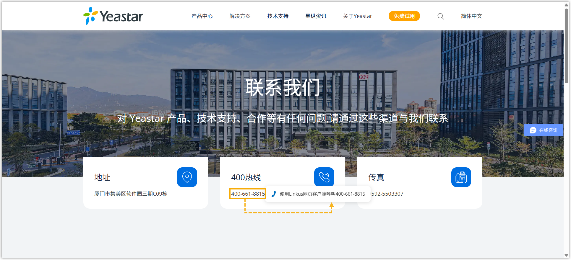 关联 Yeastar Linkus for Google 和 Linkus 网页端后,你可以点击 CRM 或网页上的电话号码,通过 Linkus 网页端快速呼叫。