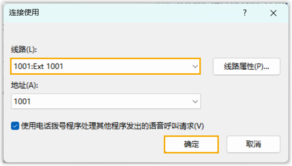 - 在 线路 下拉列表,选择要使用 TAPI 集成的分机,然后点击