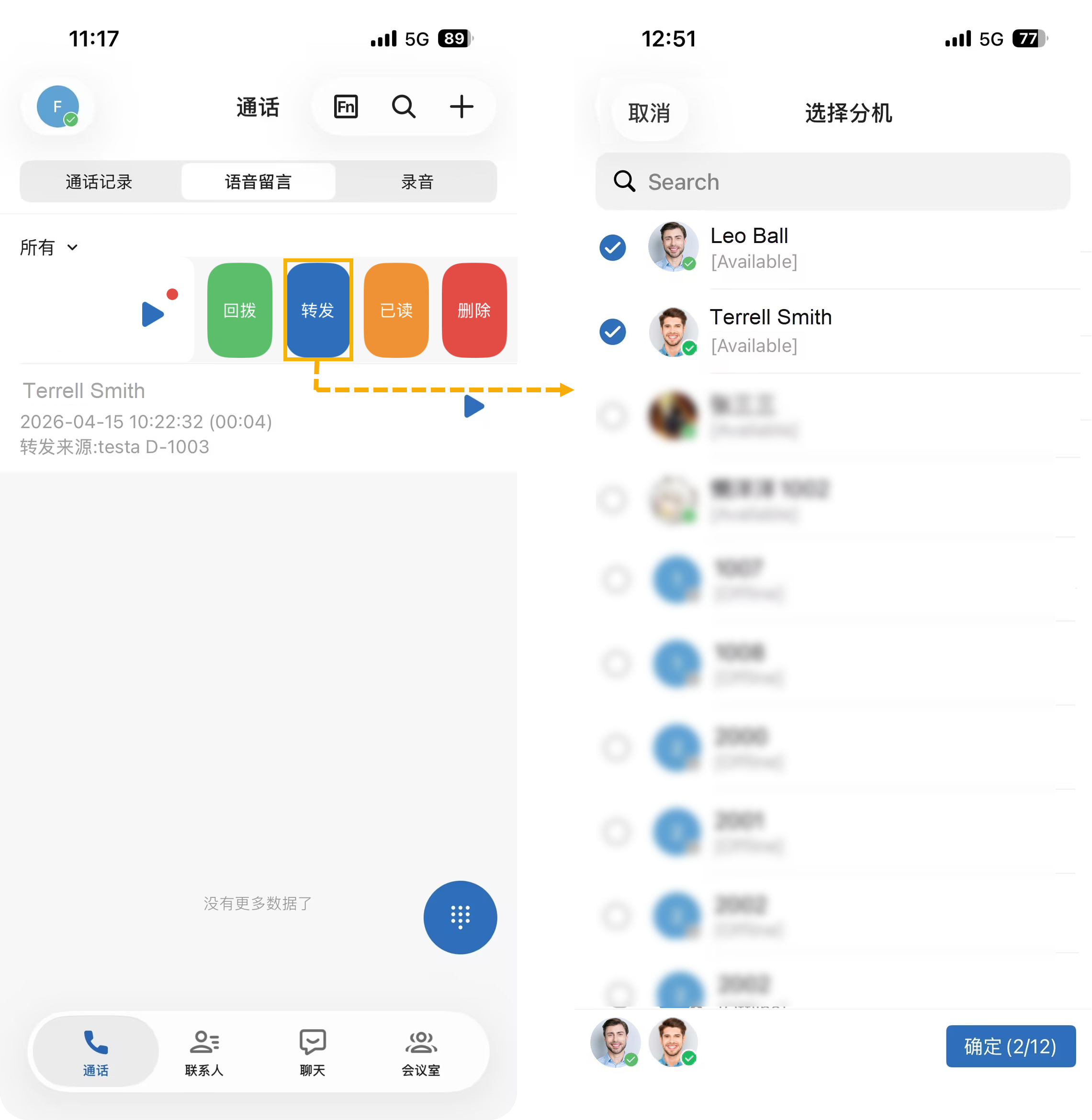 - 优化 语音留言 功能:注: 要实现以下功能,系统管理员需要将 PBX 升级至 83.23.0.23 或更高版本。